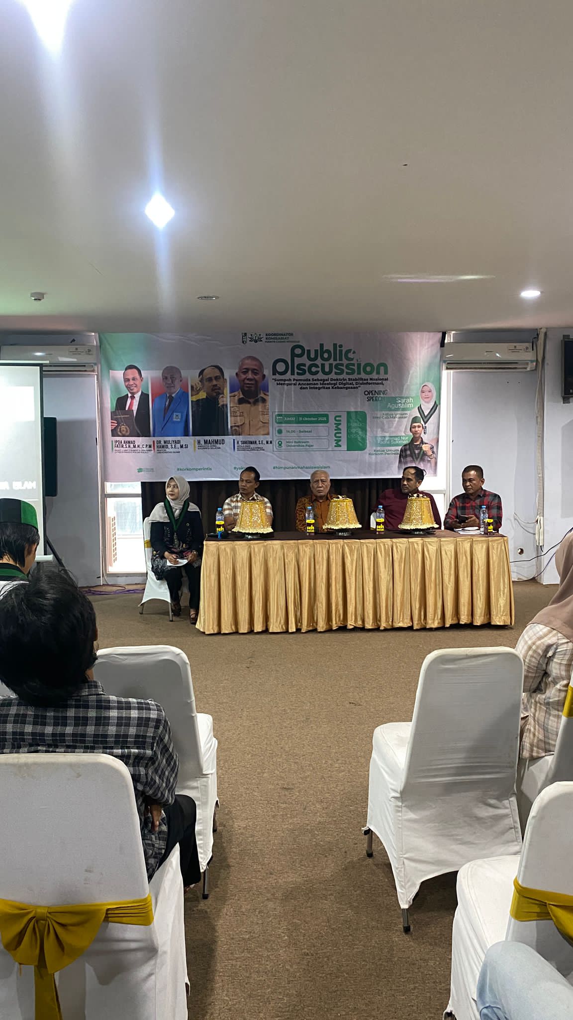 Diskusi Publik ini merupakan forum intelektual yang memberikan ruang bagi antar mahasiswa untuk berdiskusi dan bertukar pikiran mengenai isu-isu krusial dalam menuju Indonesia Emas. Diskusi ini diharapkan dapat membuka wawasan baru dan menumbuhkan semangat kritis di kalangan generasi muda untuk turut serta menjaga demokrasi yang sehat dan berkelanjutan.
